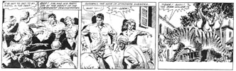 Alex Toth is a thinker. His intelligence as well as his drawing elevate him above a host of other artists more technically accomplished. Traced in a direct line from Noel Sickels through Roy Crane and Milton Caniff, Toth was never satisfied just to copy. He added to this school of design by subtracting more unnecessary detail than even they thought possible. As a result he created essential, elemental, perfectly balanced stories which remain some of the finest designed of all time.