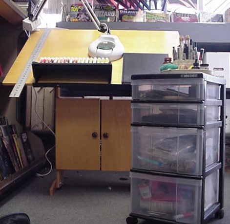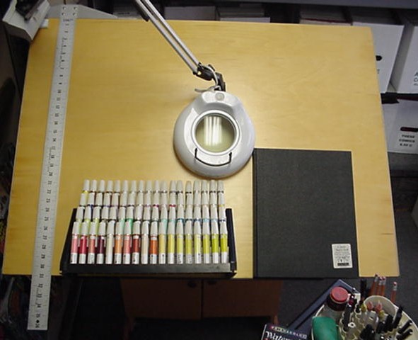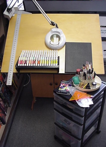 Atlas Comics along with partners at Variety Comics and Fat Dutchie's Comics, are sponsoring a charity raffle to give away a complete professional artist's studio: drafting table, arm light, taboret, utility file, sketchbooks and supplies, including: pens, pencils, t-square, brushes, ink, erasers, french curves, lettering guide, pastels, markers, and more!