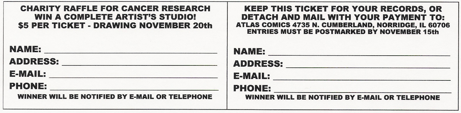 *The winner of raffle will be responsible for taking possession of the studio from Atlas Comics, so bear this in mind if you don't reside in the Chicagoland area..