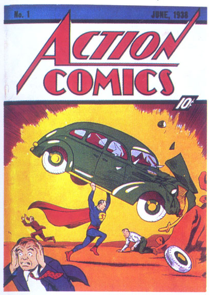 ever created. It's not hard to imagine a kid walking up to his local newsstand on a summer day in 1938 and taking a gander at this image, the likes of which had never been seen before. "Criminy! That guy's lifting up a CAR! What the heck is THIS all about?!" In this single picture, Joe Shuster explained and dramatized an entire genre, which heretofore did not even exist. The simplicity and economy of the cartooning, the direct impact of the tableau and its historic importance make this an essential iconic image of not just comic books, but Americana.